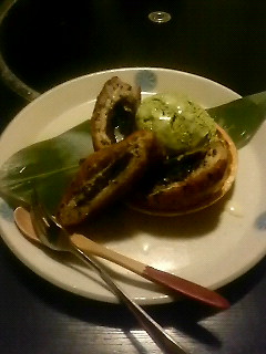 クロゴマの揚げまんじゅう、抹茶アイス添え。(たぶんそんな名前だったと思う)